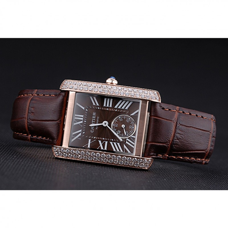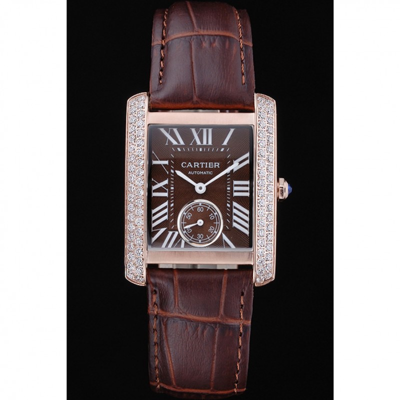# Cartier Tank MC Gold Diamond Case Brown Dial Brown Leather Strap 622170 Replica Watches